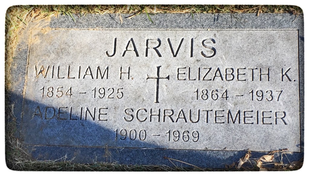 | JARVIS | Adeline | *SCHRAUTEMEIER On Headstone & LONG | ![]() | 1900 ~ 1969 | Section 24, Lot 1340 Calvary Cemetery & Mausoleum; 5239 West Florissant Ave, St. Louis, MO | Daughter of William Henry JARVIS & Elizabeth “Lizzie” KOEHOLER. Married to 1) Jim LONG & 2) Bernard SCHRAUTEMEIER |