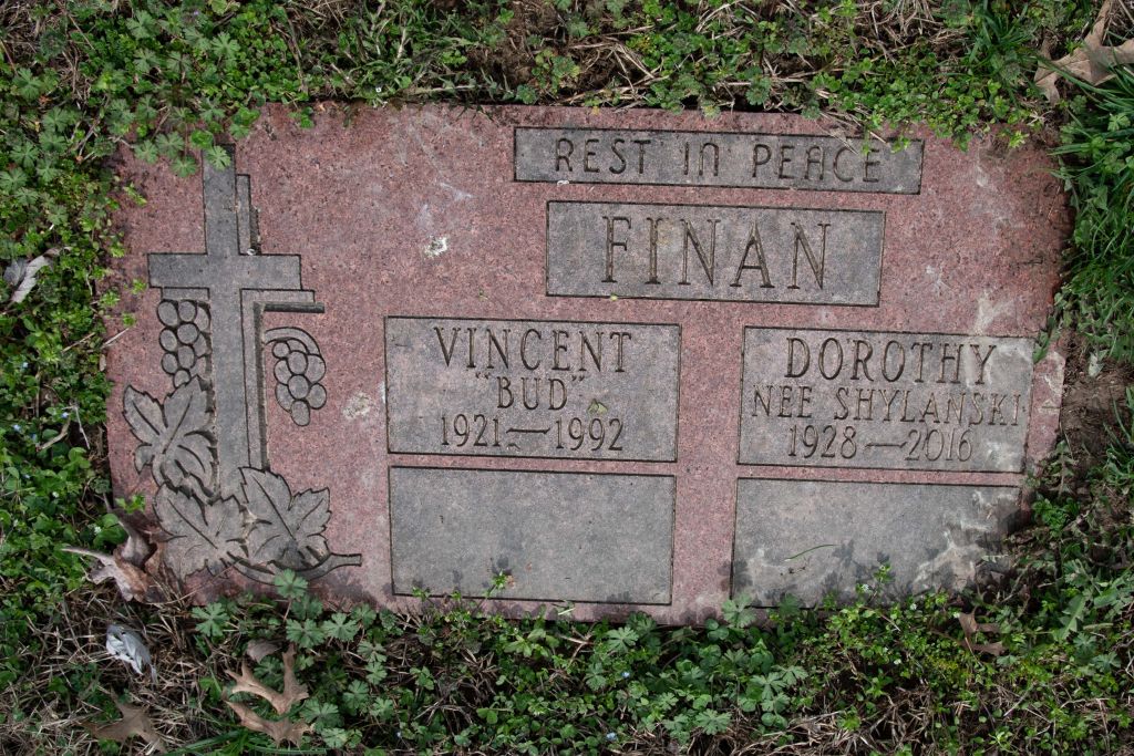 | SHYLANSKI | Dorothy | *FINAN On Headstone | ![]() | 1928 ~ 2016 | Section 29, Lot 1357 Calvary Cemetery & Mausoleum; 5239 West Florissant Ave, St. Louis, MO | Married to Vincent “Bud” James FINAN |