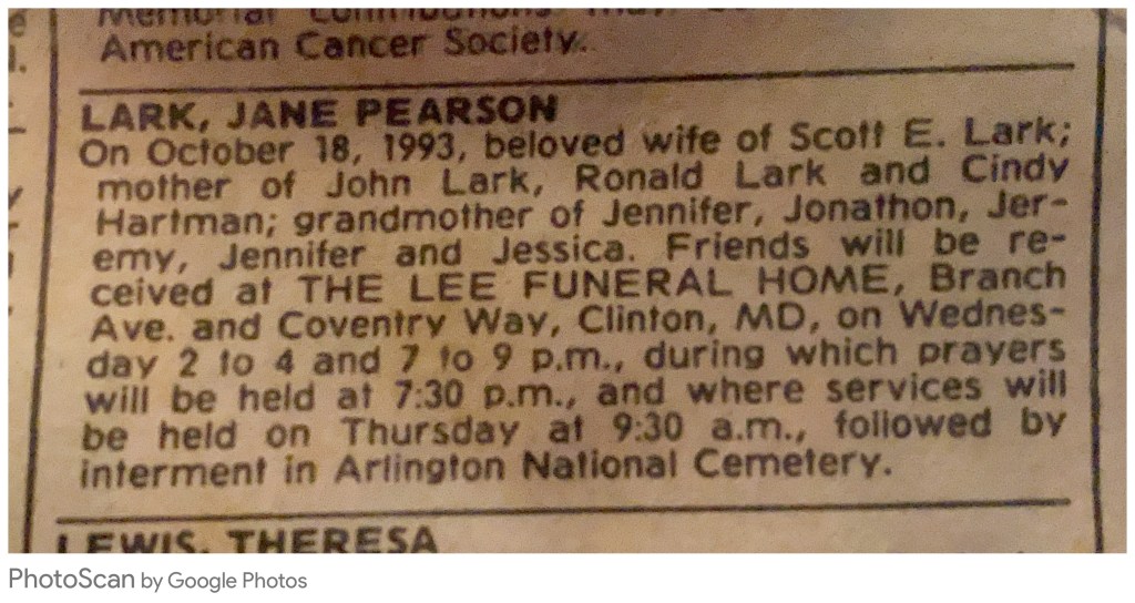 | LARK, Shirley Jane PEARSON, Shirley Jane Married Name: LARK b 2 Aug 1922 ~ d 18 Oct 1993 Daughter of George JAMES PEARSON, Sr. & Elizabeth Bessie Virginia JARVIS | ![]() |