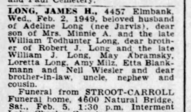 | LONG, James d 2 Feb 1949 1st Husband of Adeline JARVIS | ![]() |