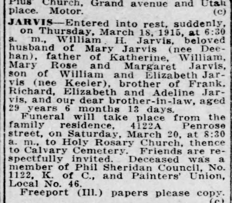 | JARVIS, William Henry 5 Sep 1885 ~ 18 Mar 1915 Son of William Henry JARVIS and Elizabeth “Lizzie” KOEHOLER | ![]() |