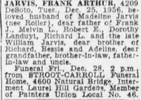 | JARVIS, Frank Arthur b 26 Jul 1892 ~ 25 Dec 1956 Son of William Henry JARVIS & Elizabeth “Lizzie” KOEHOLER | ![]() |